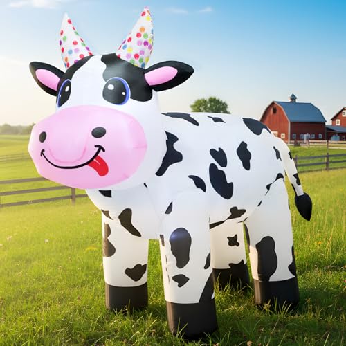 4FT Christmas Spring Farm Ranch Inflatable Cute Farm Cow Blow up Decoration with LED Light Outdoor Indoor Yard Graden Lawn Party Holiday Decor