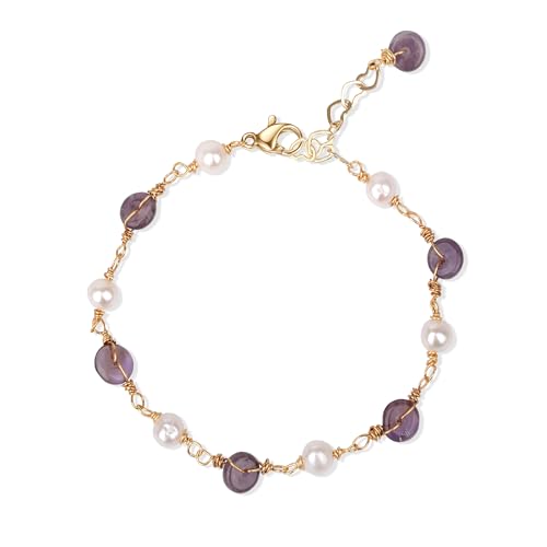 14K Gold Plated Amethyst & Pearls Bracelet for Women, Gold Charm Bracelet Dainty Natural Pearls Amethyst Jewelry for Women Girls Teen (Amethyst&Pearl)