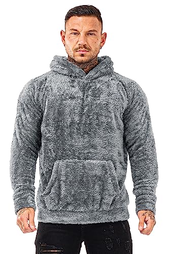 GINGTTO Mens Fuzzy Sherpa Pullover Hoodie Fashion Hoodies for Men Warm Fleece Sherpa Hoodie Mens Grey