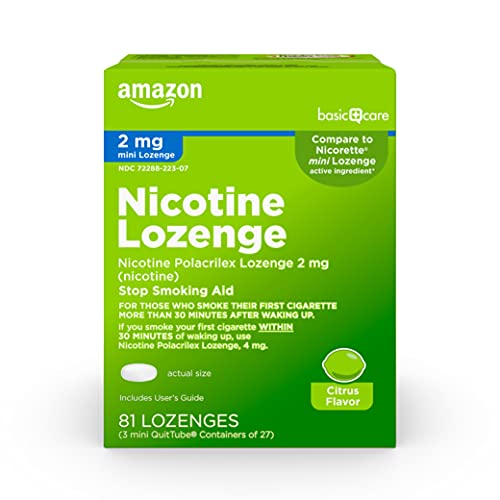 Amazon Basic Care Mini Nicotine Polacrilex Lozenge, 2 mg, Citrus Flavor Stop Smoking Aid, 81 Count