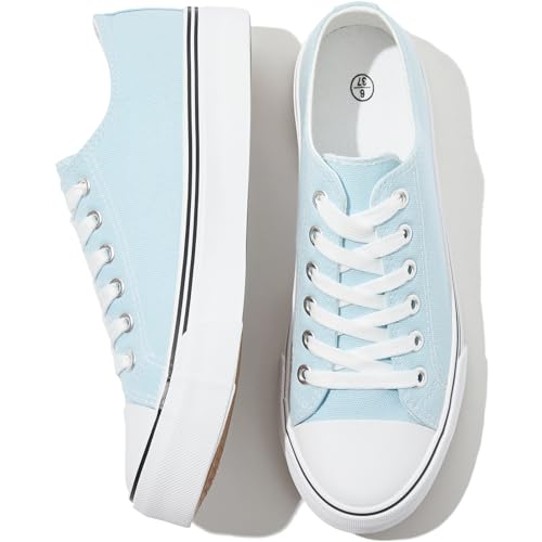 FRACORA Womens White Black Canvas Sneakers Low Top Canvas Shoes for Women Tennis Shoes(Light Blue,US10.5)