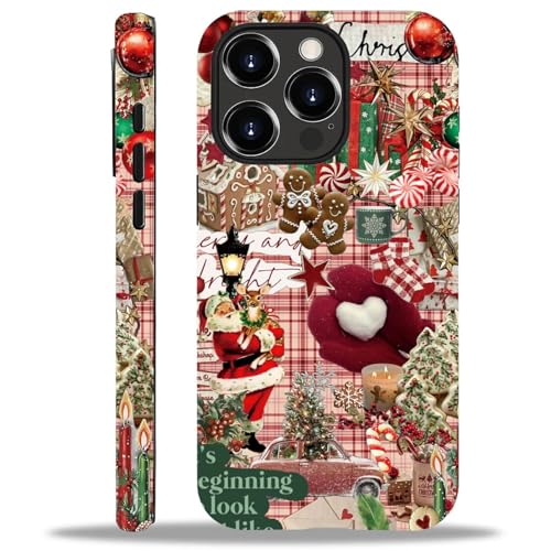 TAMEFOX Case for iPhone 15 Pro,Anti Drop Scratch Frosted Protective Cover Case for Women Girl-Cheer Christmas Collage Design