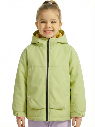 Gogokids Boys Girls Waterproof Jacket Insulated Padded Windbreaker Raincoat Sports Hooded Outerwear for Hiking Gear, Yellow, 4-5 Years