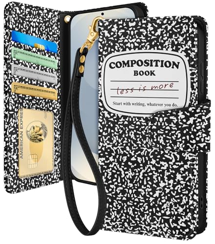 Toycamp for Samsung Galaxy S25 Plus/S24 Plus Wallet Case with Wrist Strap - Leather Flip Folio Case with RFID Blocking 4 Card Slots Galaxy S25+/S24+ Cute Aesthetic Funda Women Lady, Notebook