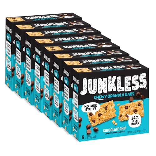 JUNKLESS Chewy Granola Bar 48 Bar Family Pack Chocolate Chip – Less Sugar, Non‑GMO, Gluten‑Free, Wholesome Snack Bars for Kids & Adults, 8 Boxes