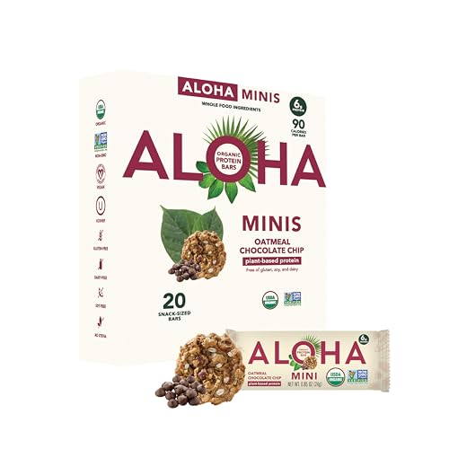ALOHA Organic Plant Based Protein Bar MINIS | Oatmeal Chocolate Chip | GLP-1 Friendly, 20 Count, 24g Bars | Vegan, Low Sugar, Gluten Free, Low Carb, Non-GMO, No Stevia, No Soy, No Sugar Alcohols