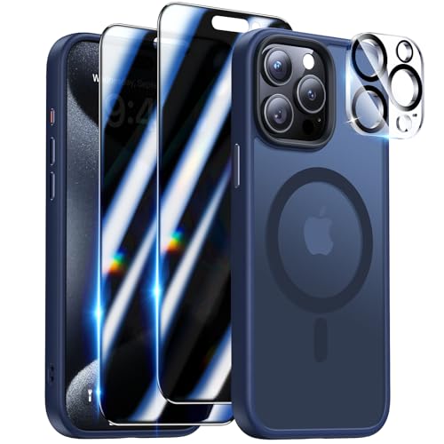 Meifigno Case for iPhone 15 Pro Max 6.7", [with 2X Privacy Screen Protectors & 1X Lens Protector] [Compatible with MagSafe] [15FT Military Drop Protection] Shockproof Case for iPhone 15 ProMax, Blue