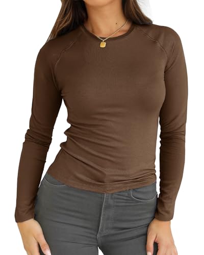 Abardsion 2025 Women Activewear Raglan Long Sleeve T Shirts Fall Basic Crewneck Slim Fit Going Out Workout Tops (Brown, M)