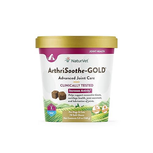 NaturVet ArthriSoothe-Gold Level 3 Advanced Joint Care for Dogs – Soft Chew Dog Supplement with Glucosamine, MSM, Chondroitin & Hyaluronic Acid – Wheat-Free Pet Supplements – 70 Ct.