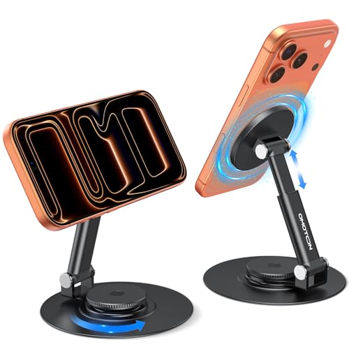 OMOTON 360° Rotating MS05 Magnetic Phone Stand for MagSafe, [Height Adjustable] Cell Phone Stand for Desk with Non-Slip Base, Office Desk Accessories for iPhone 17/16/15/14 Pro Max Air, Black