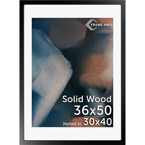 Frame Amo 36x50 Solid Wood Poster Frame Black, with 29.5x39.5 White Mat Opening for 30x40 Image, 1.5 inch Wide, 1 inch Thick, Acrylic Front, Gallery Grade