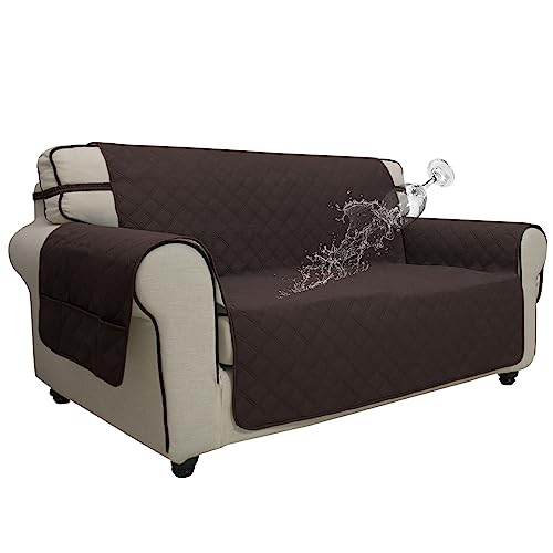 Easy-Going Waterproof Oversized Loveseat Covers Leakproof Couch Cover for 2 Cushion Couch Sofa Cover Washable Sofa Slipcover Non-Slip Furniture Protector with Pocket for Pets (Medium-XL, Chocolate)