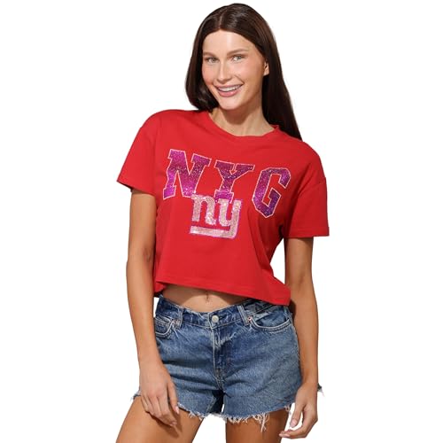FOCO New York Giants NFL Womens Rhinestone Logo Crop Top - M