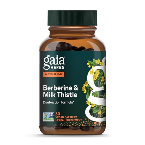 Gaia Herbs Berberine & Milk Thistle - Milk Thistle & Berberine Supplement with Ginger Root - Supports Liver Health* - Vegan, Gluten-Free, Dairy-Free, Non-GMO Project Verified - 60 Capsules