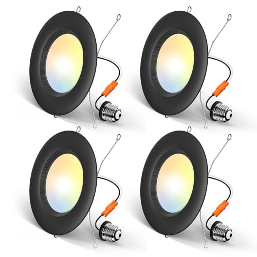 Amico 4 Pack 5/6 inch 5CCT LED Recessed Lighting, Dimmable, 12.5W=100W, 950LM, 2700K/3000K/4000K/5000K/6000K Selectable, Retrofit Can Lights with Baffle Trim, IC Rated - ETL & FCC, Black