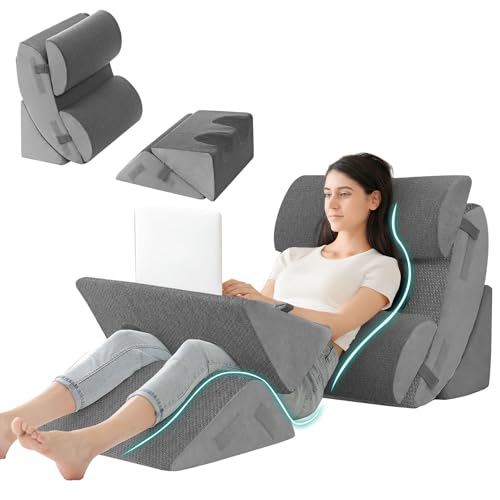 Hansleep 6PCS Orthopedic Bed Wedge Pillow for Sleeping, Adjustable Post Surgery Pillow Set for Body, Back and Leg Pain Relief, Memory Foam Support Pillows for After Surgery, Grey