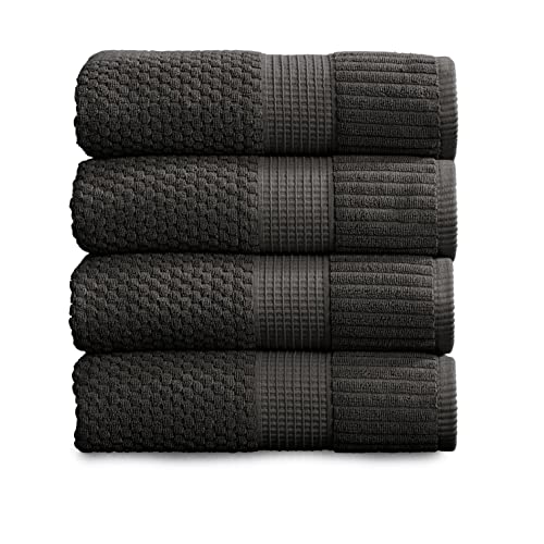 NY Loft 100% Cotton 4 Pack Bath Towels, 30" x 52", Dark Grey, Quick-Dry, Absorbent, OEKO-TEX Certified, Machine Washable