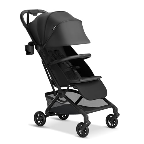Mompush Velo Lightweight Travel Stroller, Compact & Airplane-Friendly for Baby and Toddler, Lie-Flat Seat, One-Hand Fold, with Leather Bumper Bar, Shoulder Strap, Raincover, Storage Bag & Cup Holder
