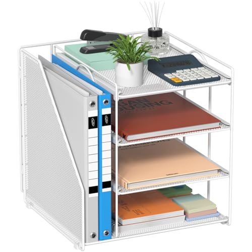 Becomrock White Desk Organizer and Accessories, 4-Tier Paper Organizer for Desk, Office Accessories & Workspace Organizers and Desktop Storage for Office Supplies (White)