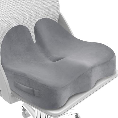 CushZone Seat Cushion, Memory Foam Office Chair Seat Cushion for Office Chairs/Car/Long Trip/Desk Chair/Gaming, Large Size for Sciatica & Hip & Tailbone Pain Relief, Sciatica Support (Light Gray)