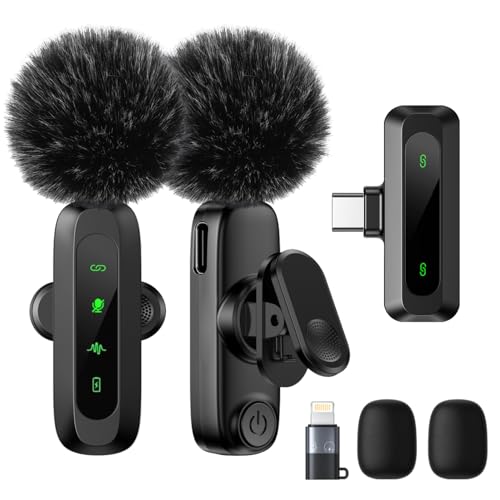 SHUYAQA Wireless Lavalier Microphone for iPhone/Android Phone - Professional Noise Reduction Wireless Microphones, USB Type-C Lapel Mini Mic for Tiktok YouTube Video Recording Vlog Live Streaming