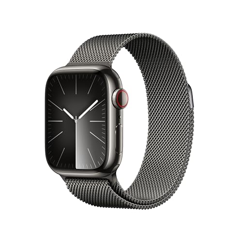 Apple Watch Series 9 [GPS + Cellular 41mm] Smartwatch with Graphite Stainless Steel Case with Graphite Milanese Loop. Fitness Tracker, ECG Apps, Always-On Retina Display