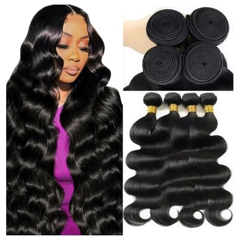 12A Human Hair Bundles 22 24 26 28 Inch Body Wave Bundles Human Hair 100% Unprocessed Brazilian Virgin Weave 4 Bundle for Women Natural Black Wavy Human Hair Extensions
