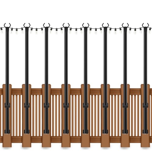 5 Ft String Light Poles 8 Pack, String Light Poles for Outside with Fixing Clips,Hanging Light Poles for Deck Fence Garden Backyard Wall Bistro,Metal Poles for Outdoor String Lights