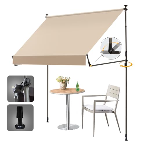HOMEDEMO Manual Retractable Awning 138"x118" Foldable Side Bar 30°-180°,Outdoor Patio Awning Height Adjustable 82-118in Retractable Awning UV 50+ Protection,NO Drilling Awings for Backyard