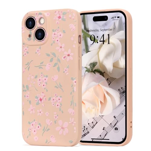 Wirvyuer Floral Elegant Design Phone Case for iPhone 15, Compatible with MagSafe Shockproof Protective Cover for Women Girls Slim Fashion Flower Case for iPhone 15, Pink