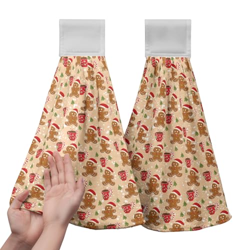 Christmas Gingerbread Man Kitchen Towels with Hanging Loop Candy Cane Hot Cocoa Xmas Tree Hand Towels Set of 2 Orange Bath Towels Winter Holiday Soft Absorbent Fingertip Dish Tie Towel for Bathroom