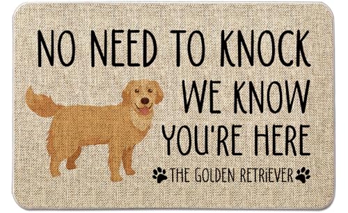 QIONG MENG Dog Door Mat Golden Retriever Yellow Lab Welcome Doormats No Need to Knock We Know You're Here Entrance Rug Farmhouse Home Kitchen Floor Front Door Mat 17 x 27 Inch for Outdoor Indoor