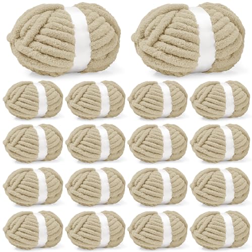 Inhand 18 Pack Chunky Chenille Yarn for Crocheting–30.6 Yards, 7.7oz, Soft Fluffy Thick Yarn,Gifts for Women/Grandma/Men Birthday Christmas Unique,Hand Knitting for Blankets&DIY Crafts (Khaki)