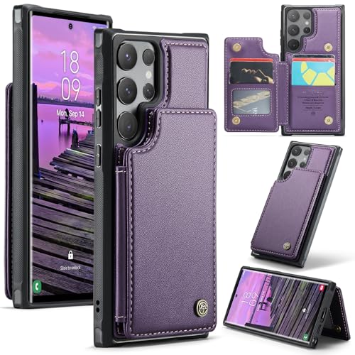 Bemal for Samsung Galaxy S24 Ultra Wallet Case with Card Holder, RFID Blocking, Shockproof Leather Kickstand for Men and Women, Durable Protective Phone Cover for 6.8", Purple