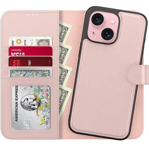 LUMARKE Designed for iPhone 13 Wallet Case - Detachable Flip Folio Cover - RFID Blocking 4 Card Slots Holder - Premium Leather Magnetic Kickstand - Shockproof Protective Phone Case 6.1", Pink