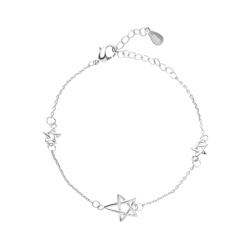 Watforsh 925 Sterling Silver Star Charm Bracelet for Women with Three Star Adjustable Y2K Link Bracelet for Celestial Jewelry
