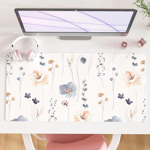 QIYI Large Mouse Pad, Floral Desk Mat for Desktop, Women Girls PU Leather Waterproof Gaming Mousepad, Computer Laptop Flower Desk Accessories Protector Writing Pad for School Office Home 31.5" x 15.7"