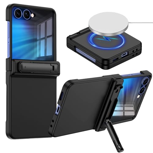 Hekodonk for Galaxy Z Flip 7 Case,[Compatible with MagSafe][Front Screen Protector][Stand][Hinge Protection],Hard PC Matte Slim Fit for Men Women Girl for Samsung Galaxy Z Flip 7,Black
