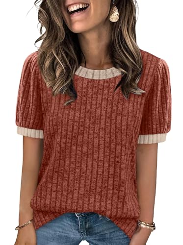 Sipaya Womens Short Sleeve Sweater Textured Tunic Tops 2026 Spring Summer Business Casual Blouse Red Large