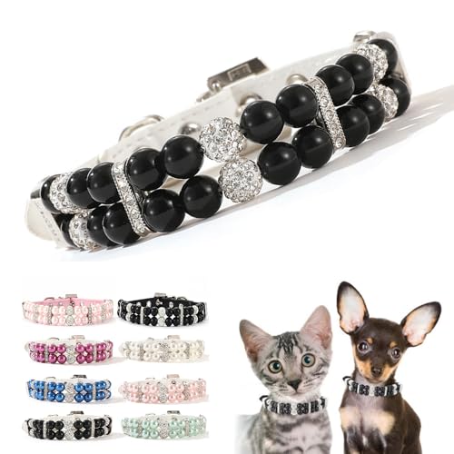 Blackwhite Dog Pearl Necklace Collar,Bling Rhinestone Crystal Luxury Beaded Puppy Necklace Fancy Pretty Cute Diamond Jewel for XXS XS Small Medium Female Girls Kitten Pet,M