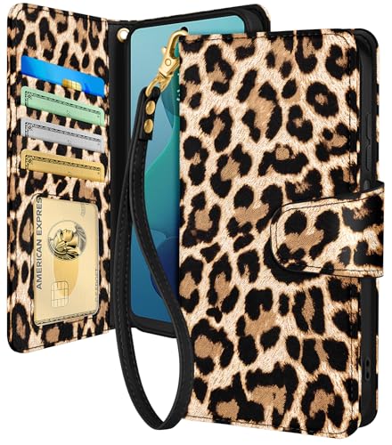 Toycamp for Moto G 5G 2024 Wallet Case with Wrist Strap - Leather Flip Folio Phone Case with RFID Blocking 4 Card Holder for Motorola G 5G 2024 Funda Cute Aesthetic for Women Ladies, Brown Leopard