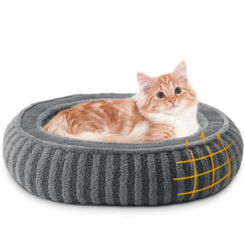 Small Dog Beds for Small Dogs, Washable Cat Beds for Indoor Cats with Anti-Slip Bottom, Supportive Soft Calming Sleeping Pet Bed for Puppy and Kitten, 21 inches, Grey