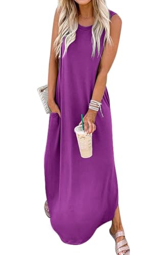 Women's Loose Sundress Long Dress Sleeveless Split Maxi Dresses 2026 Summer Beach Dress with Pockets