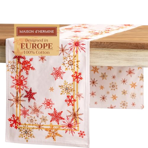 Maison d' Hermine Table Runner 100% Cotton Double Layer Table Runners 108 inches Long for Thanksgiving Christmas Decorations Home Kitchen Dining Party Wedding (Crystal Star, 14.5" x 108")