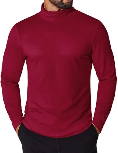 COOFANDY Men's Turtleneck Long Sleeve Turtle Neck Shirts Lightweight Undershirt Thermal Pullover Sweater Wine Red