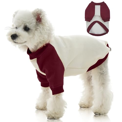 FUAMEY Dog Sweatshirt Fleece Lined for Extra Small Dogs,Dog Pullover Sweater Soft Dogs Warm Sweaters Puppy Stretchy Clothes Winter American Style Raglan Sleeve Crewneck Pullover Red XS