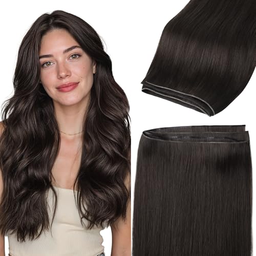 GOO GOO Genius Narrow Edge PU Weft Hair Extensions Human Hair, Invisible Sew in Hair Extensions Human Hair, 2 Dark Brown 22 Inch 120g, Seamless Soft Lightweight
