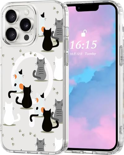 Houdqklee Magnetic for iPhone 13/14 Case, Cute Kawaii Girly Cat Phone Case Compatible with MagSafe, Clear Soft Slim Fit Shockproof Protective Case for Women Girls for iPhone 13/14