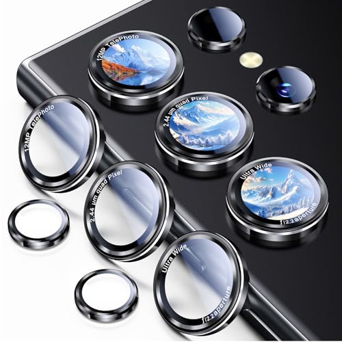 Uyiton for Samsung Galaxy S24 Ultra Camera Lens Protector - [Case-Friendly][Not Easy to Break][Ultra-Thin] Military-Grade Tempered Glass with Aluminum Metal Rear Camera Screen Cover - Black+Silver