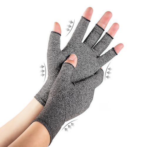 TFUSOM Arthritis Gloves for Women for Pain, Men and Women Fingerless Compression Wrap for Hand Pain and Osteoarthritis Compression Gloves Women,XL,Grey